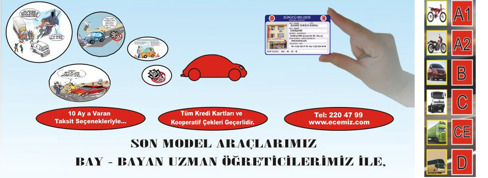 Kursumuzda A2 (Motosiklet), B (Otomobil) , C (Kamyon), E (Otobüs) ve D (Çekici) sınıflarında sürücü sertifikası verilmektedir